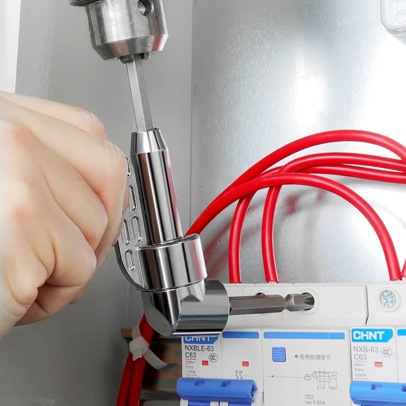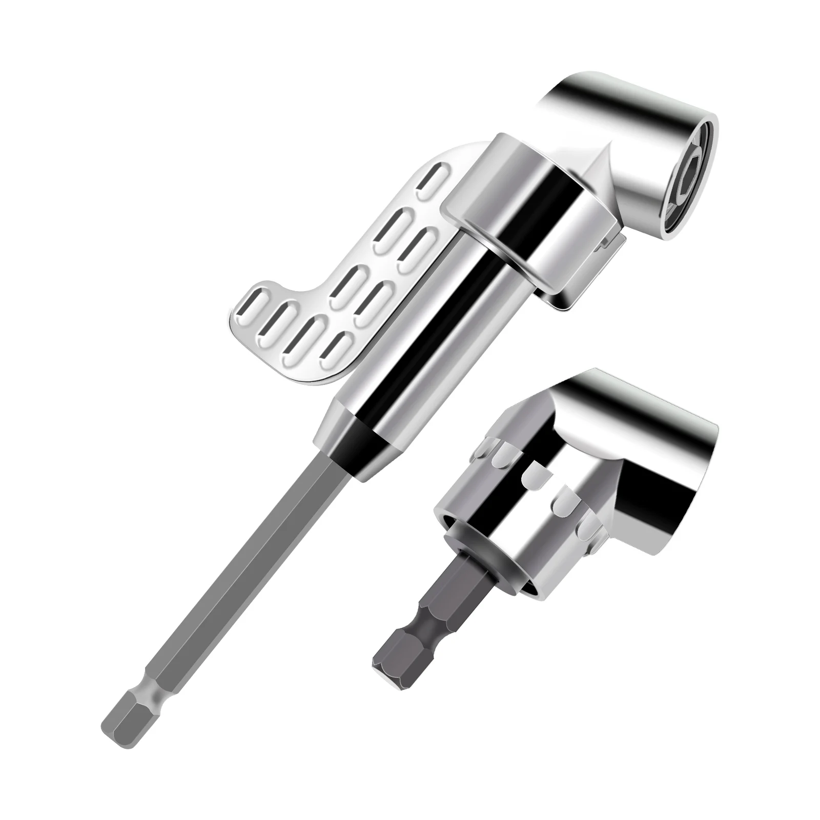 This right angle drill adapter is designed to make drilling and screwdriving easy in tight or hard-to-reach spaces. Featuring a 105-degree angled design, it allows precise operation around corners and confined areas where standard drills cannot fit. The set includes both long and short adapters for added versatility, ensuring compatibility with a wide range of tasks and power tools. Durable and easy to attach, this angled screwdriver adapter is an essential accessory for woodworking, home improvement, and professional repair projects.